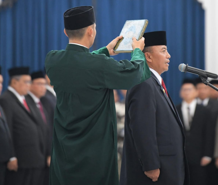 TRANSJABAR.COM | Penjabat Gubernur Jawa Barat Bey Machmudin melantik Herman Suryatman menjadi Sekretaris Daerah Provinsi Jabar. Pelantikan berlangsung di Aula Barat Gedung Sate, Kota Bandung, Jawa Barat Senin (1/4/2024).