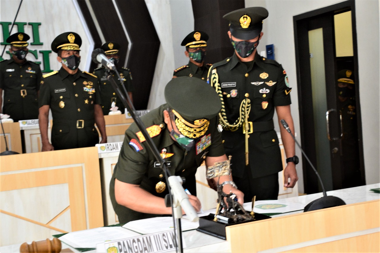 Bandung|Newsnet.id – Pangdam III/Siliwangi Mayjen TNI Nugroho Budi Wiryanto melantik 358 Prajurit Tamtama muda lulusan Abit Dikmata Gelombang II Tahun 2020 melalui Virtual di Ruang Puskodal Makodam III/Siliwangi Jalan Aceh No. 69 Kota Bandung, Sabtu (10/4/2021).