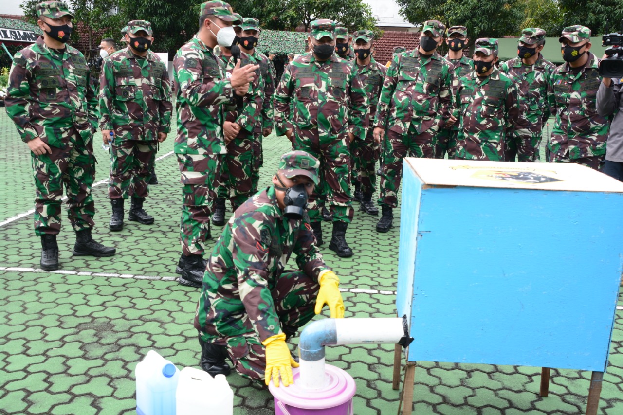 Pangdam III/Siliwangi Mayjen TNI Nugroho Budi Wiryanto yang didampingi Kasdam III/Siliwangi Brigjen TNI Kunto Arief Wibowo dan para Pejabat Utama Kodam III/Siliwangi, memberikan apresiasi atas upaya dan inovasi Prajurit Yonzipur-3/YW, Sabtu (2/1/2021).