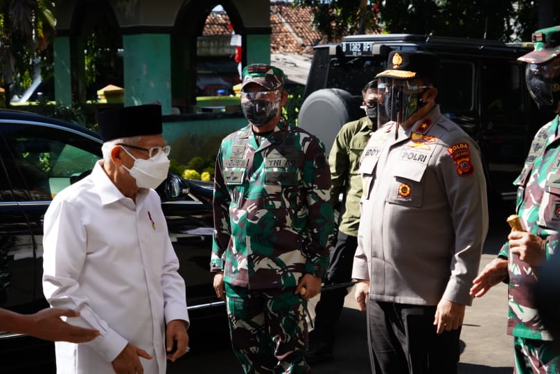 Kunjungan Wakil Presiden RI Ma’ruf Amin ke Kabupaten Bogor dalam rangka meninjau pelaksanaan pembelajaran tatap muka (PTM) di SMP Negeri 1 dan pelaksanaan serbuan Vaksinasi di SMK Kesehatan Annisa di Citeureup di Jalan Karanggan Raya Gunung Putri Citeureup Bogor, Kamis (9/9/2021).