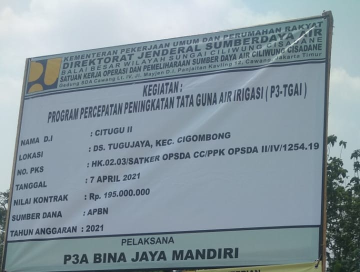 Bogor|Newsnet.id – Program Percepatan Peningkatan Tata Guna Air Irigasi ( P3TGAI ) Desa Tugu Jaya, Kecamatan Cigombong, Kabupaten Bogor, menjadi sorotan beberapa Lembaga Swadaya Masyarakat (LSM), salah satunya LSM Penjara Kabupaten Bogor.