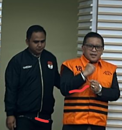 Menggunakan rompi orange tokoh politik PDIP tersebut dengan tangan diborgol keluar dari ruang penyidik KPK dan digiring untuk menjalani penahanan selama 20 hari kedepan.