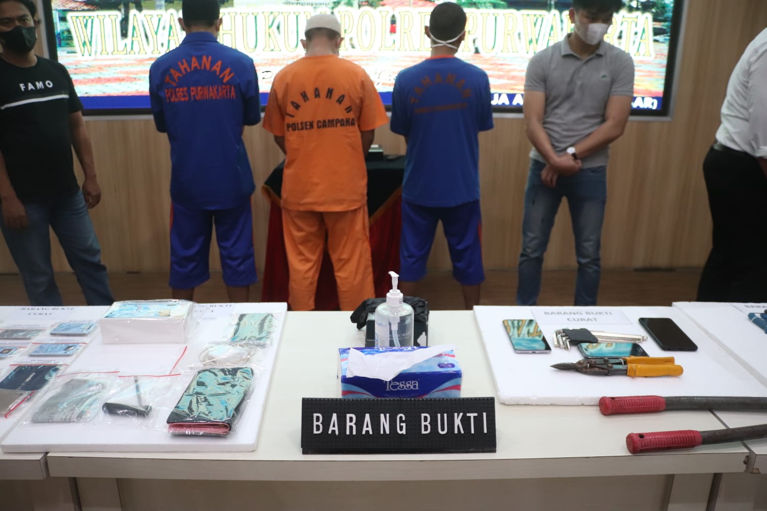 Kapolres Purwakarta, AKBP Suhardi Hery Haryanto melalui Wakapolres, Kompol Satrio Prayogo, mengatakan jajaran Satuan Reserse dan Kriminal (Satreskrim) Polres Purwakarta berhasil mengamankan tiga pelaku Curat dan dua pelaku lainnya masih buron atau masuk Daftar Pencarian Orang (DPO).