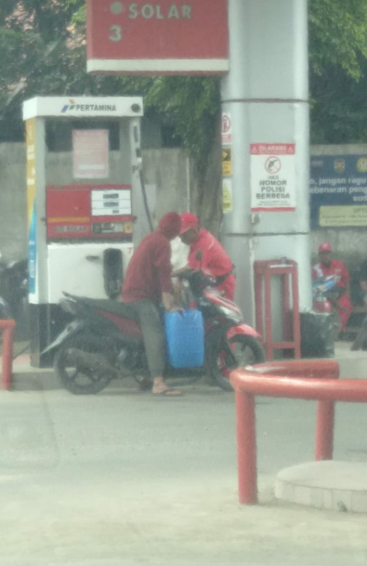 Diduga pembeli solar bersubsidi tersebut membeli berulang – ulang dengan menggunakan jerigen.