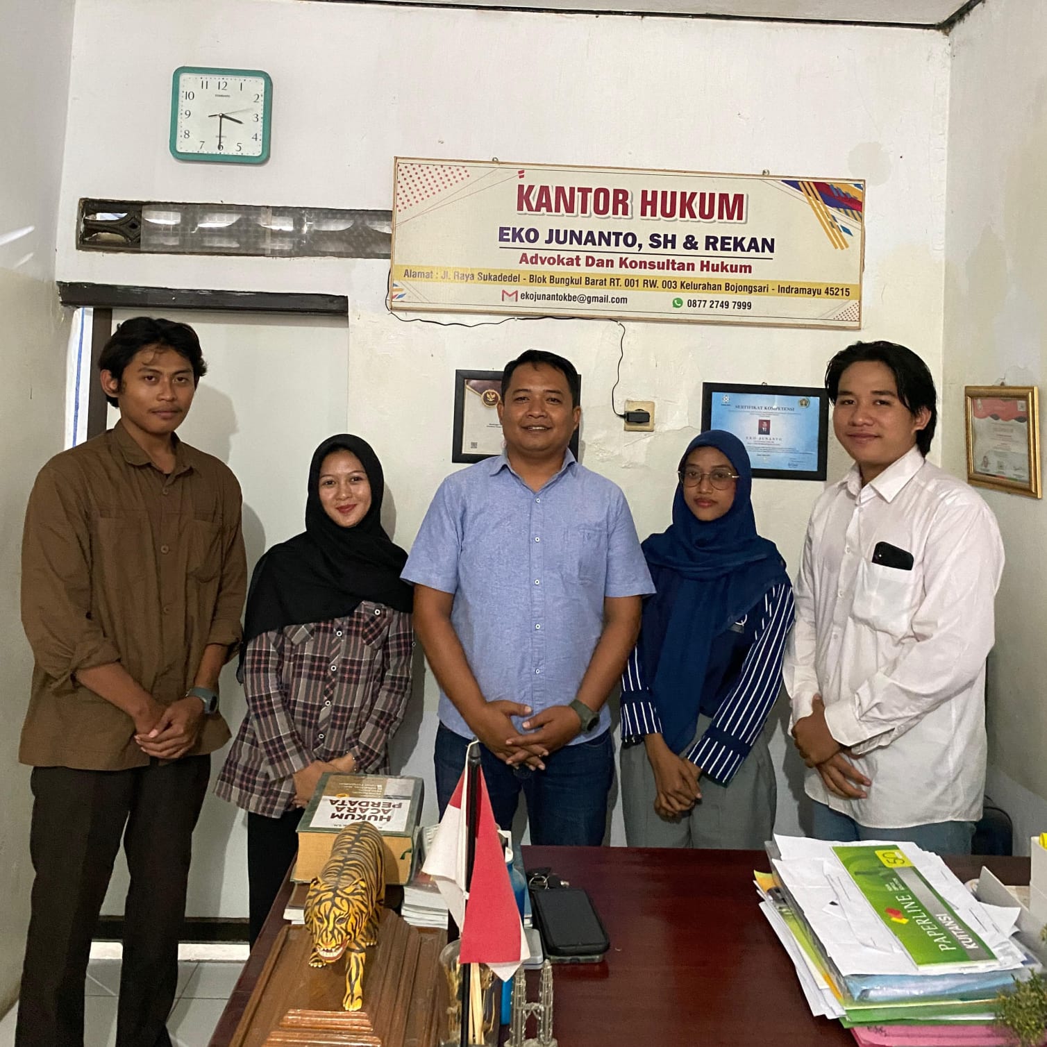 Acara ditutup dengan sesi foto bersama, penyerahan plakat simbolis dari mahasiswa kepada Kantor Hukum Eko Junanto, SH & Rekan, serta penjajakan kerja sama terkait program magang dan mentoring hukum bagi mahasiswa UIN Siber Cirebon.