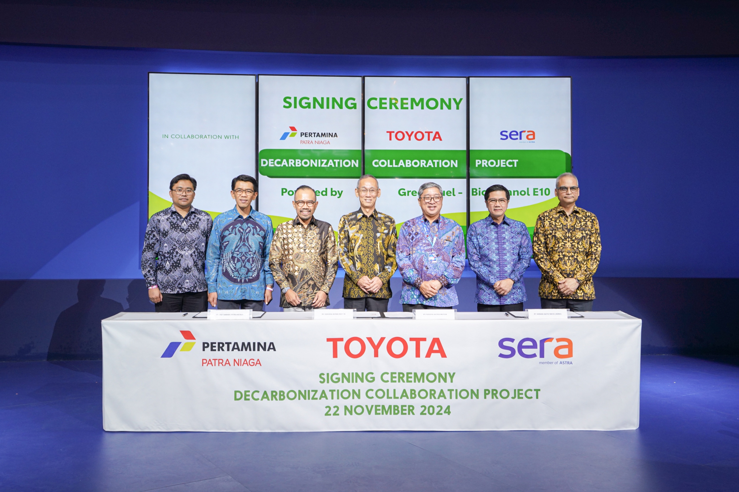 TRANSJABAR.COM | Untuk mempercepat adopsi biofuel di Indonesia, PT Pertamina Patra Niaga menjalin kerjasama dengan PT Toyota-Astra Motor (TAM) dan PT Serasi Autoraya (TRAC) untuk melakukan uji coba Bioethanol E10 melalui Use Case Collaboration. Penandatangan kerjasama dilakukan di booth Toyota pada acara Gaikindo Jakarta Auto Week 2024 di Ice BSD Tangerang pada Jumat (22/11).