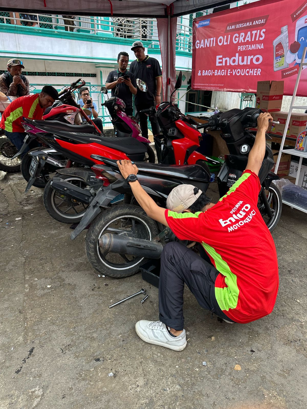 Program ini berlangsung dari Jumat (7/3) hingga Minggu (9/3) di tiga titik lokasi, yaitu Perumahan Pondok Gede Permai, Bekasi; Masjid Baiturrahman, Cisarua, Bogor; dan Kantor Kelurahan Cawang, Jakarta Timur. Masyarakat dapat langsung mengunjungi titik layanan selama periode berlangsung untuk mendapatkan penggantian oli Pertamina Enduro secara gratis.