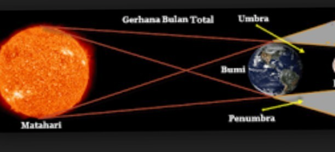Jika matahari, bumi, dan bulan sejajar, maka bulan akan masuk umbra dan bayang-bayang inti bumi dan terjadilah gerhana.