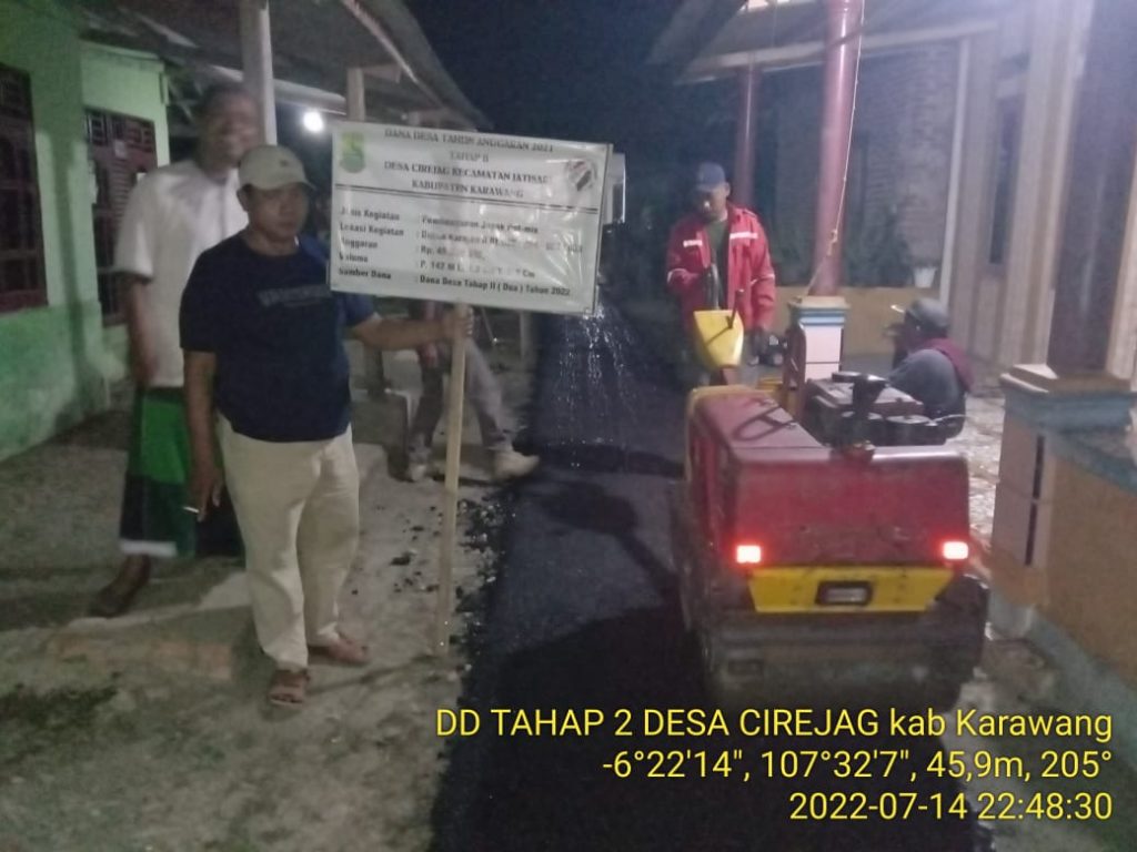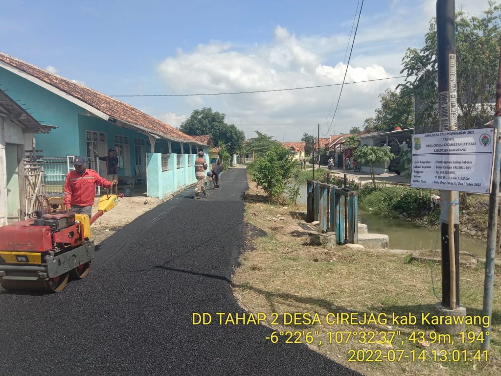transjabar.com – Pemdes Cirejag, Kecamatan Jatisari, Kabupaten Karawang, Jawa Barat terus menjalankan program pembangunan di wilayahnya, baik sektor infrastruktur dan ekonomi kerakyatan.