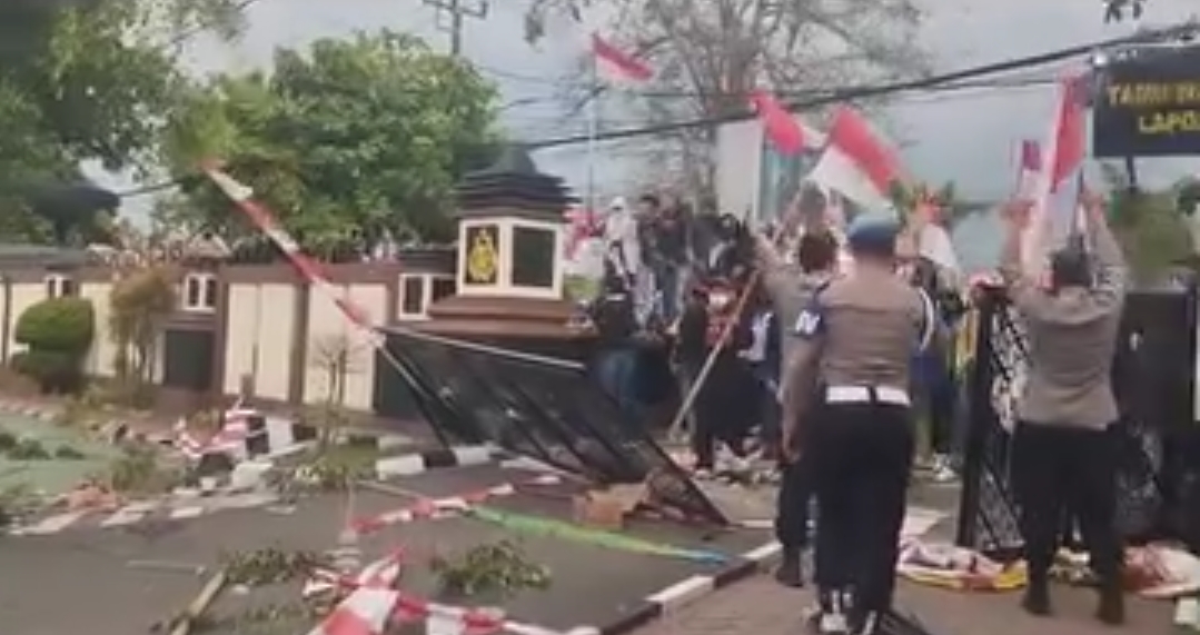Demonstran Robohkan Pagar Mapolres, Polisi Tembakan Gas Air Mata