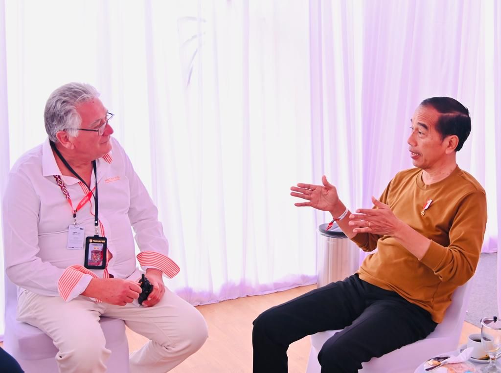 Setelah bertemu dengan Menteri Koordinator bidang Kemaritiman dan Investasi Luhut Binsar Pandjaitan, Menteri Pemuda dan Olahraga Zainudin Amali dan juga Presiden F1 H2O/Powerboat Nicola di San Germano, Presiden dan Ibu Iriana menuju podium penonton.