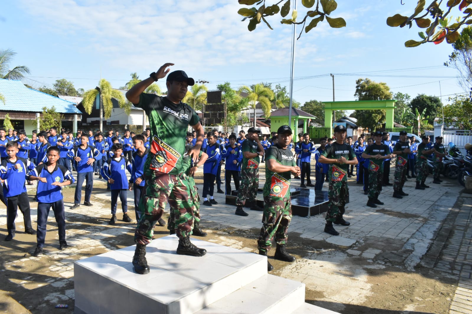 TRANSJABAR.COM | Siswa Sehat Semangat Belajar, Koramil 1002-04/Labuan Amas Selatan Goyang Siswa MTsN 1 HST di Jalan Pancasila Nomor 17 Kelurahan Pantai Hambawang Barat Kecamatan Labuan Amas Selatan Kabupaten Hulu Sungai Tengah. Kamis (09/03/2023).