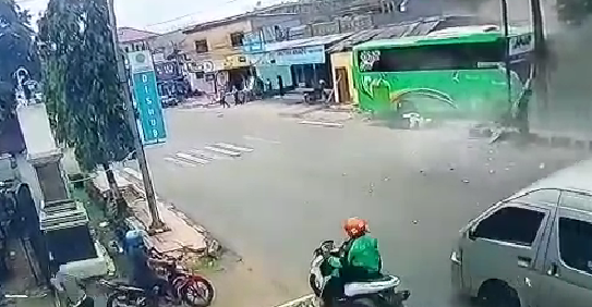 Transjabar.com – Insiden terjadi di Jalan Veteran, Kelurahan Ciseureuh Kabupaten Purwakarta Jawa Barat, sebuah Bus tiba tiba seruduk sebuah warung nasi tepat seberang didepan Kantor Dishub Purwakarta, Senin, 7 Nopember 2022 siang sekitar pukul 11.20 Wib.