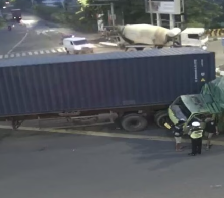Transjabar.com | Duaar suara terdengar sangat kencang sekali tatkala sebuah truk trailler dengan Dum truk bertabrakan di perempatan, Kedung Baruk, Rungkut, Surabaya pada hari, Jumat, 11 Nopember 2022) pagi.