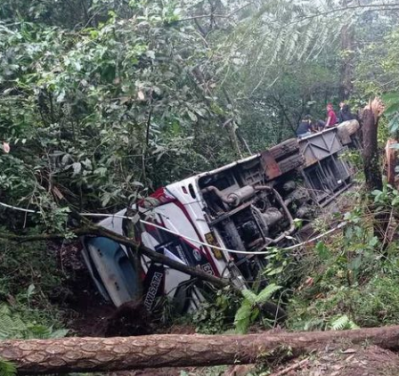 Diduga sopir tidak bisa mengendalikan laju Bus akibat rem blong, dimana pada saat itu tengah berada di jalur tikungan tajam Greeb Forest tepatnya di Desa Sarangan Kabupaten Magetan, Jawa Timur, pada Minggu, (4/12/2022) sekitar pukul 11.00 Wib.