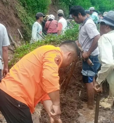 Menurut Dudy, longsor terjadi akibat curah hujan yang tinggi sehingga kultur tanah diwilayah itu menjadi mudah longsor. (son/red).