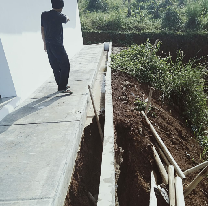 Pasalnya, belum lama dibangun bangunan tanpa penguatan Tembok Penahan Tanah ( TPT ) sudah longsor dan sebabkan bangunan retak.