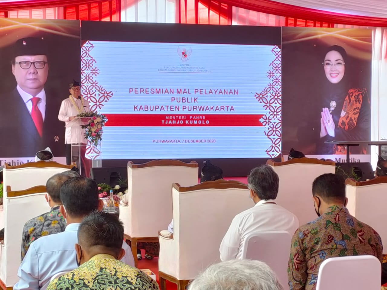 Purwakarta|Newsnet.id – Menteri Pendayagunaan Aparatur Negara dan Reformasi Birokrasi (PAN-RB) Tjahjo Kumolo didampingi Wakil Gubernur Jawa Barat, Uu Ruzhanul Ulum resmikan Mal Pelayanan Publik (MPP) Bale Madukara, di Purwakarta, Senin (07/12/2020).