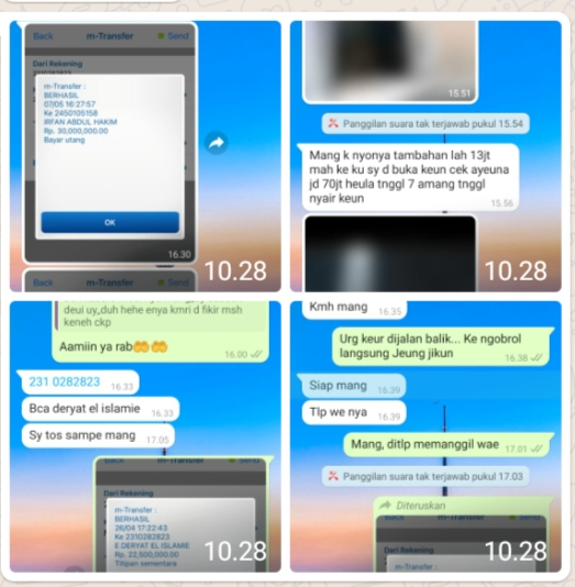 Sesuai rincian bukti transfer dari ke LH, D membayar utang lanjutan sebesar Rp. 35 juta sudah membayar Rp.22 juta, sisanya Rp.13 juta lagi.