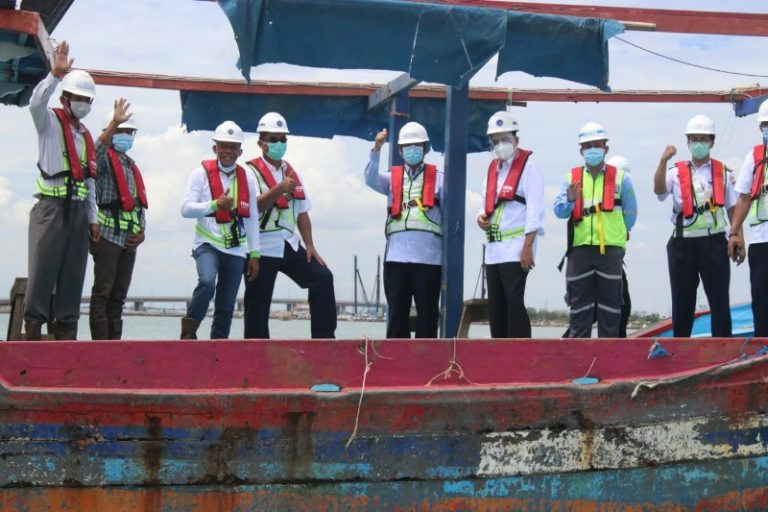 Kegiatan Peninjauan yang dilaksakan Menteri Perhubungan (Menhub) Budi Karya Sumadi bersama Kang Jimat untuk memastikan proyek tahap 1 pembangunan pelabuhan tersebut dapat selesai sesuai target pada November 2020 dan bisa dioperasikan secara terbatas pada Desember 2020,″ ujar Budi.(put).