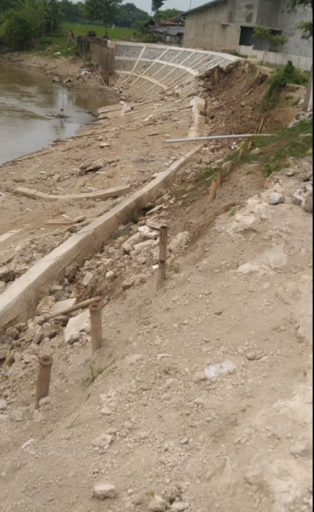 Alhasil, akibat diduga pekerjaan tidak sesuai dengan RAB, turap ambrol akibat tergerus arus air.