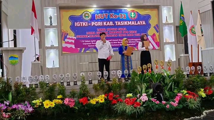 TRANSJABAR.COM | Peringatan HUT ( Hari Ulang Tahun Ikatan Guru Taman Kanak – Kanak Indonesia ( IGTK ) ke 73 Kabupaten Tasikmalaya dilaksanakan di Aula Pendopo di lingkungan Setda Tasikmalaya, Rabu (31/05/2023).